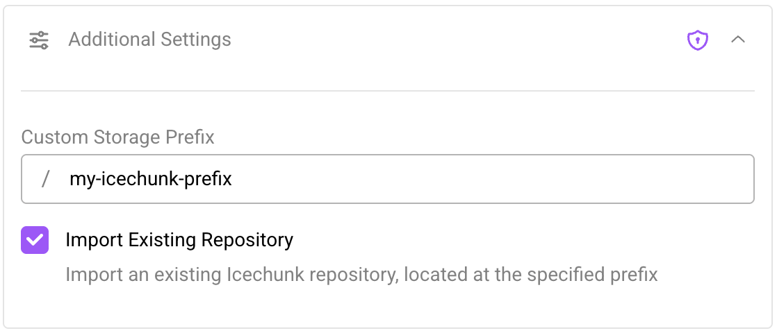 Check the Import Existing Repository button, and type in the prefix under which your Icechunk repo is stored.