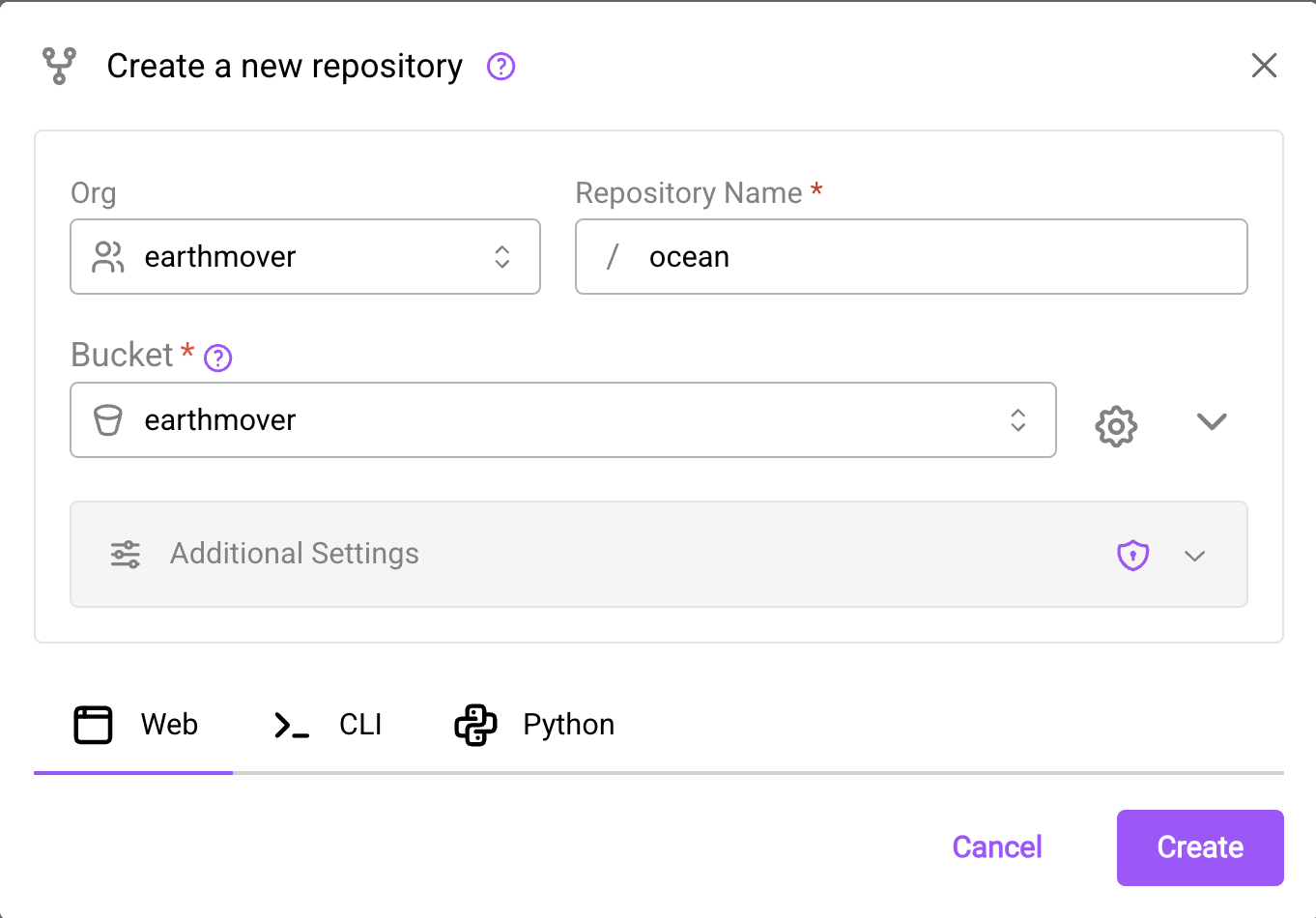 For this example, we are going to create a Repo called ocean to hold oceanography data 🌊.