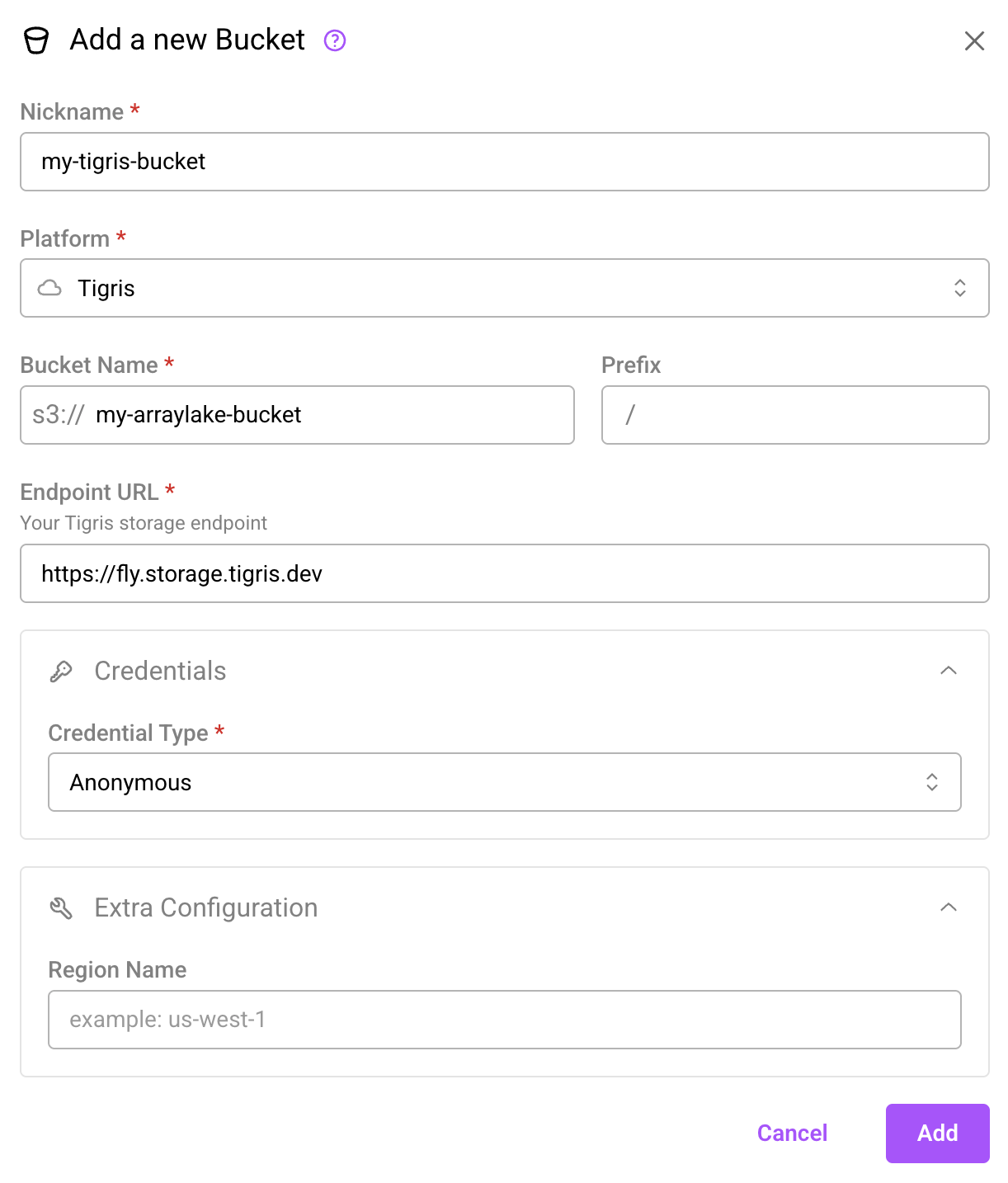 To use Tigris with Arraylake: